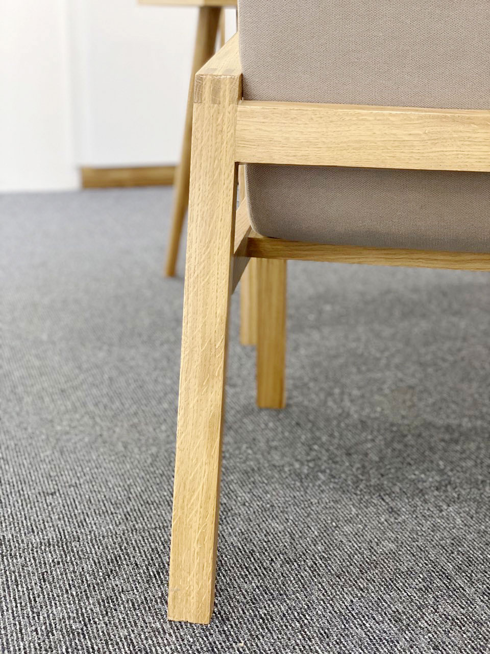 Le mobilier sur mesure, dessiné et fabriqué dans notre atelier, met en avant le chêne massif, apportant chaleur et sophistication à l’ensemble. Cette approche sur mesure garantit non seulement une parfaite adaptation à l’espace, mais aussi une identité forte pour la marque GERFLOR.